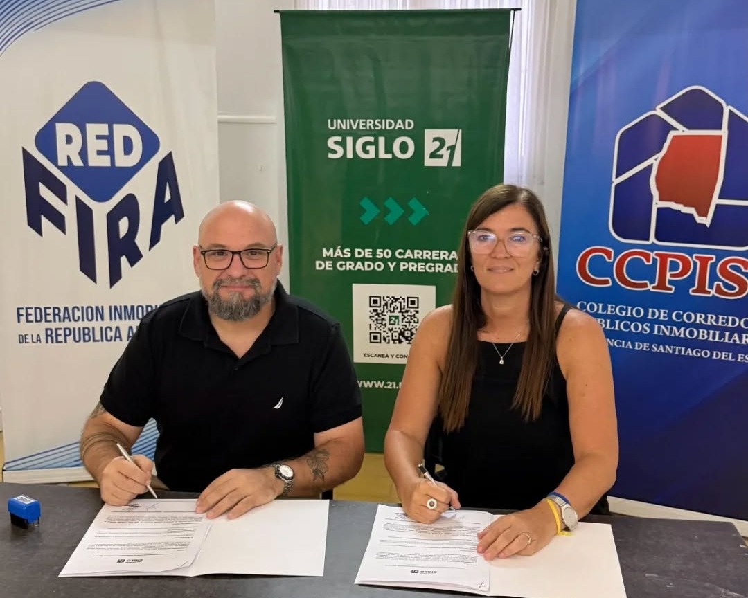 Lucas Agüero, Vicepresidente del Colegio de Corredores Inmobiliarios de Santiago del Estero, firmó un convenio institucional con la Universidad Siglo 21. En la reunión también se habló sobre proyectos a futuro entre ambas instituciones. Gracias a este acuerdo, los matriculados del CCPISE y sus familiares directos podrán acceder a un 10% de descuento en carreras de grado y pregrado en Universidad Siglo 21, reafirmando nuestro compromiso con la formación continua y la profesionalización del sector. Creemos en la educación como motor de crecimiento y en las alianzas estratégicas como puente hacia nuevas oportunidades.